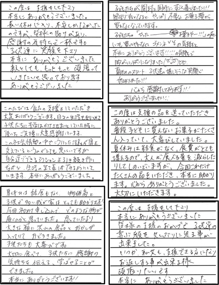 今回のCSPでは、これまでにない量の食品をお届けすることができました。ご寄贈くださった皆さま、助成やご寄附をお寄せいただいた皆さまに、あらためて深く感謝申し上げます。